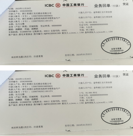 En diciembre de 2023, la compañía donó RMB 50,000 al Fondo de Talentos de la ciudad natal de Huangzhai en el condado de Pujiang, específicamente para apoyar a las empresas privadas y contribuir al desarrollo económico de Huangzhai.